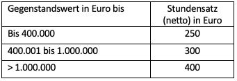 2.3 Die nachfolgenden Gebühren und Honorare sind netto und verstehen sich zzgl. der gesetzlichen Umsatzsteuer, sofern eine solche anfällt.